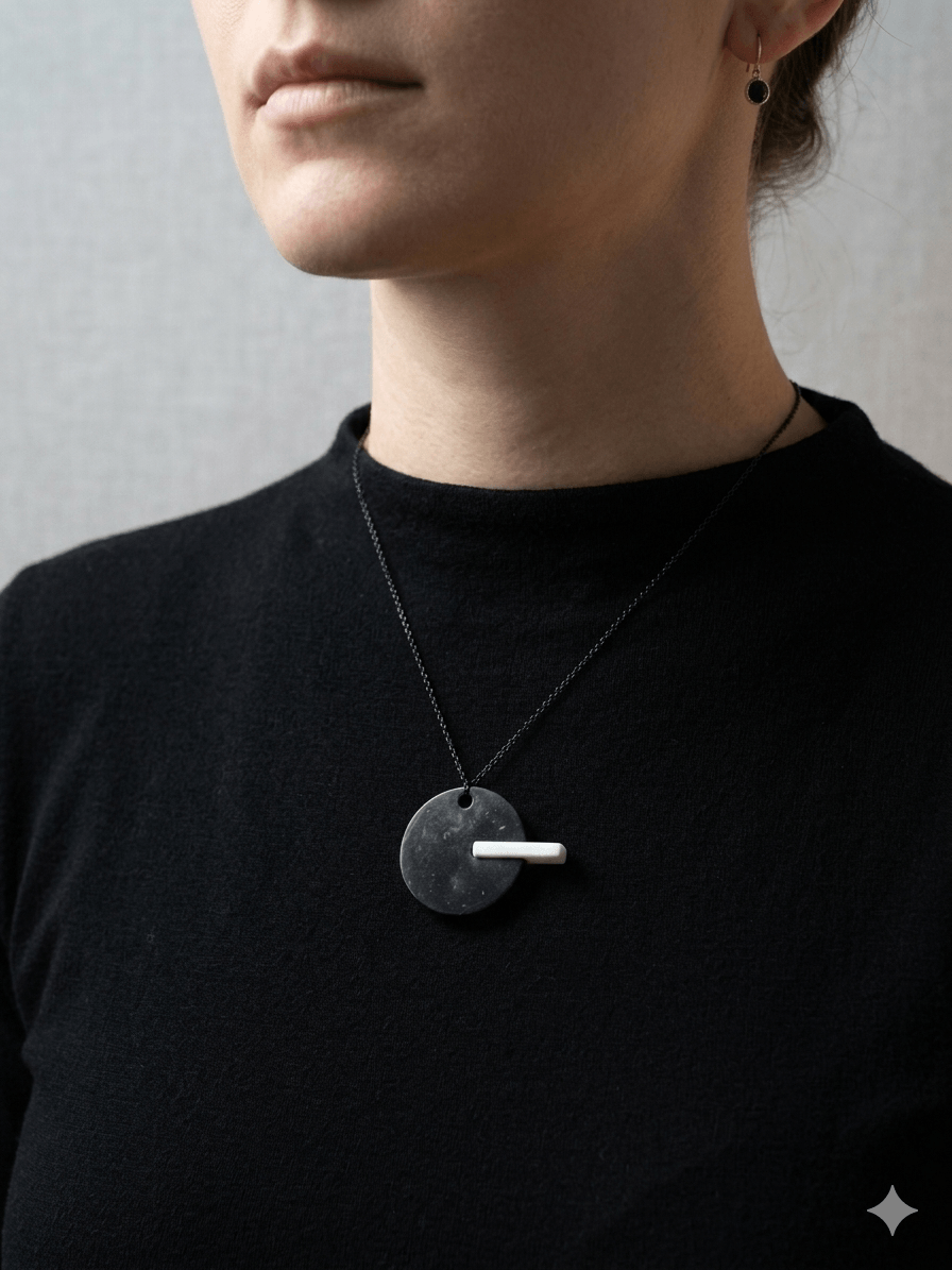 Κολιέ Duo από Μαύρο & Λευκό Μάρμαρο – Wearable Marble Sculpture