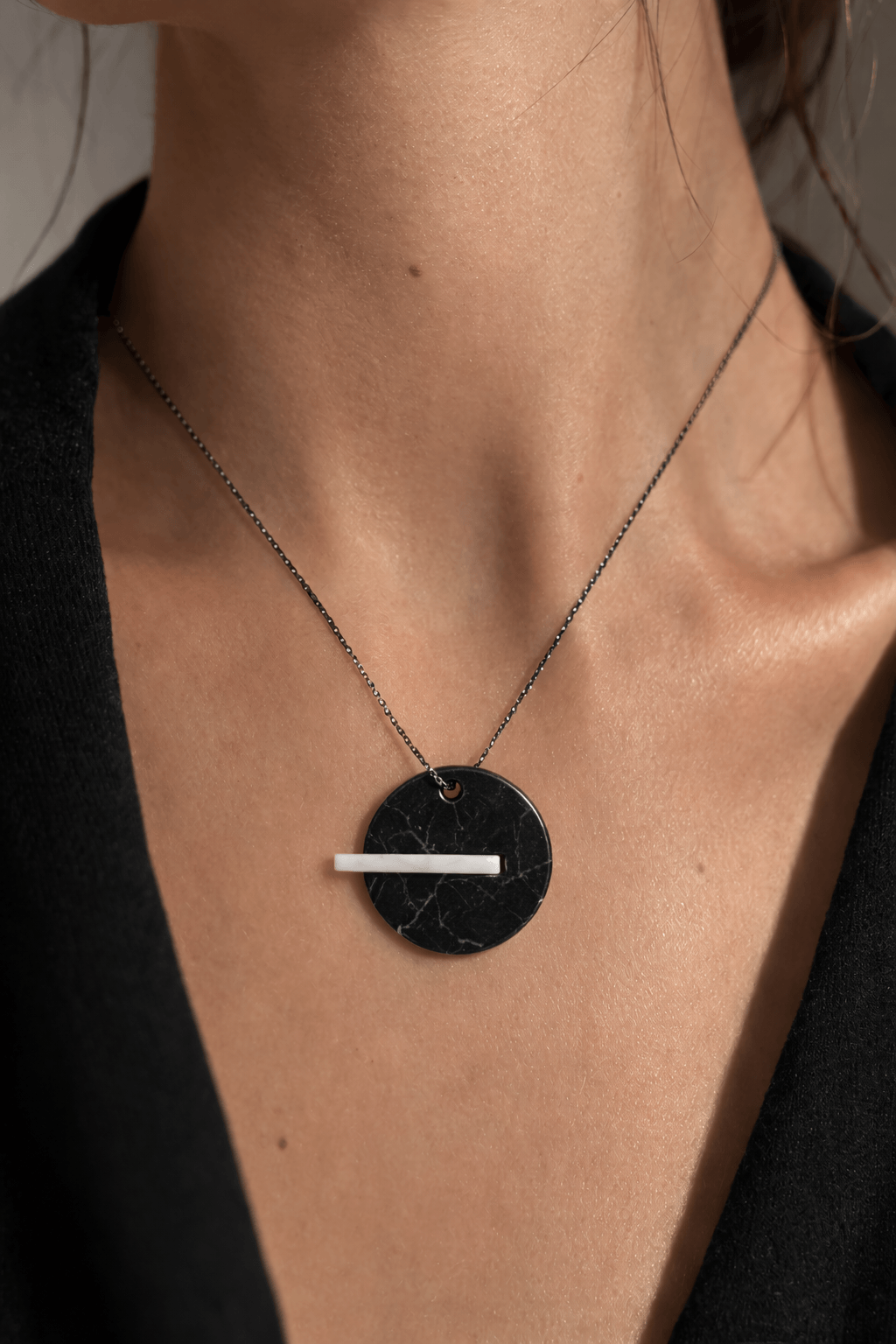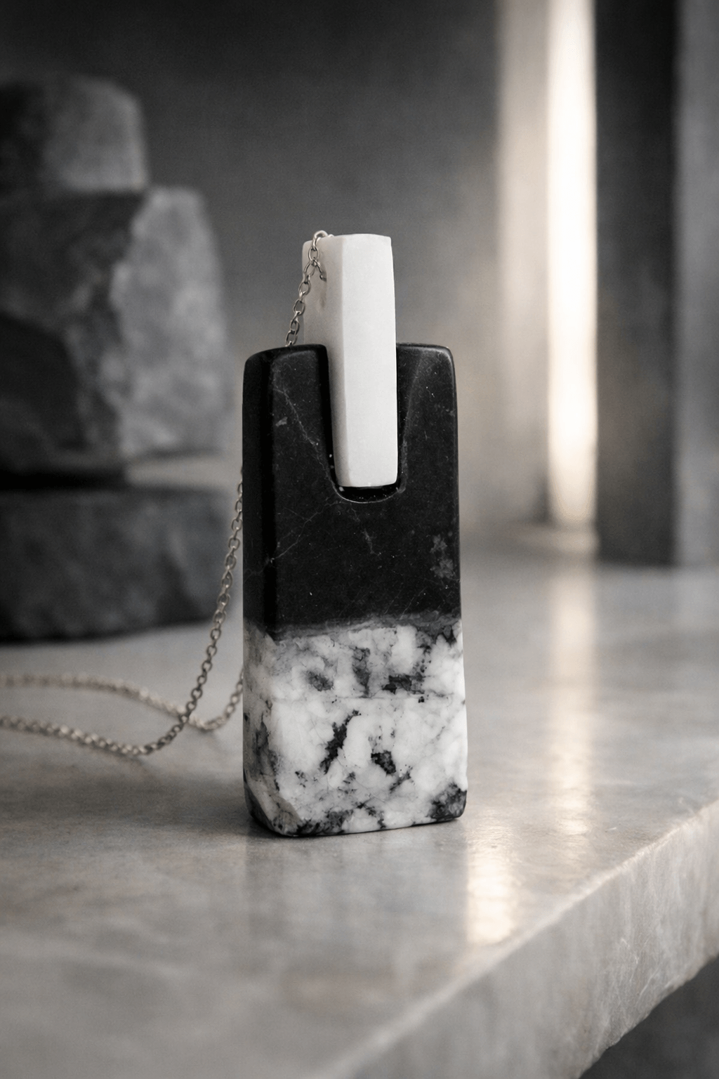 One of a Kind Κολιέ Γλυπτό από Μάρμαρο Θάσου & Μαύρο Μάρμαρο– Duo Collection | mARTable
