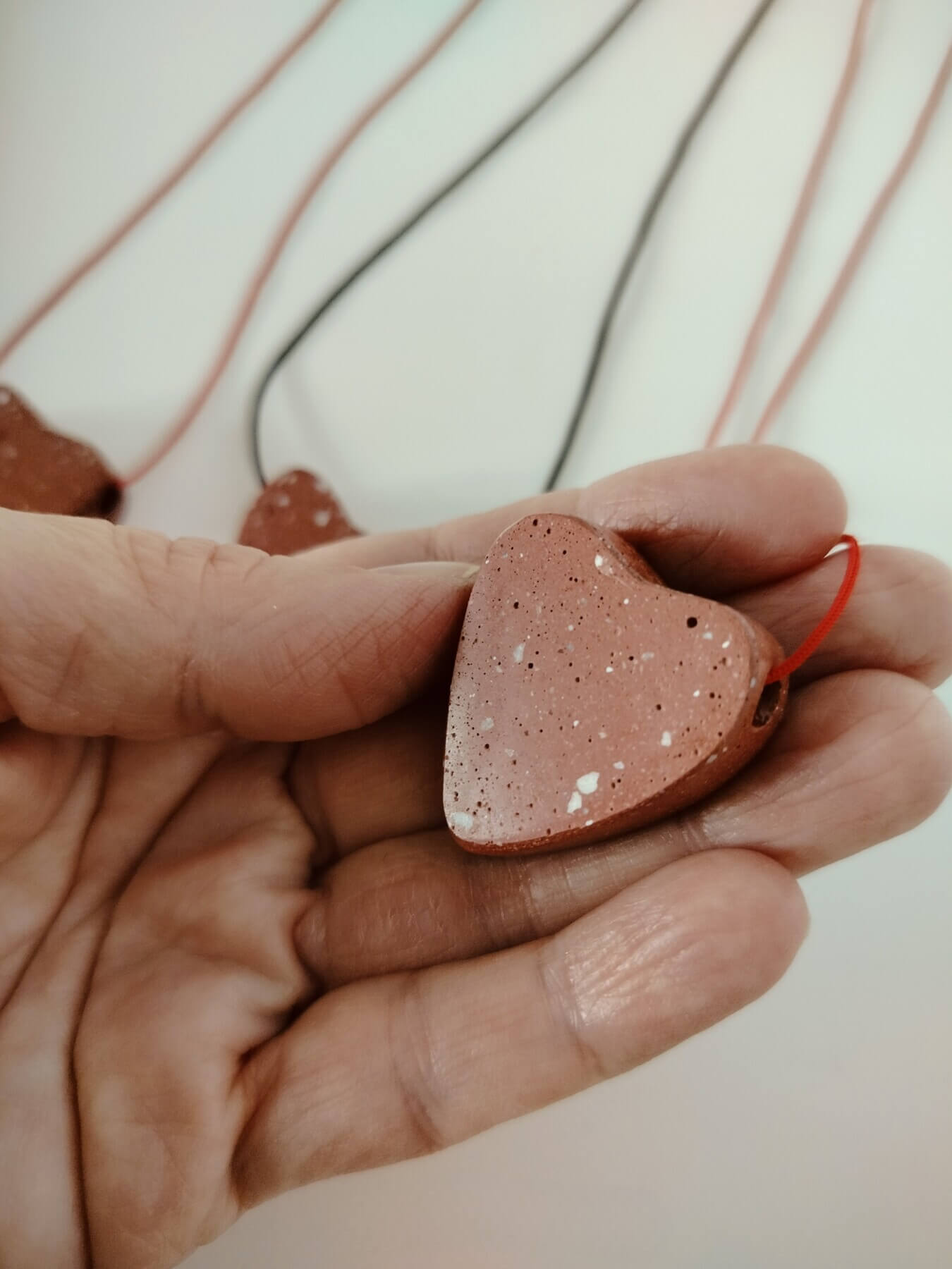 • Χειροποίητο κολιέ καρδιά από τσιμέντο με ένθετα σπασμένα μάρμαρα